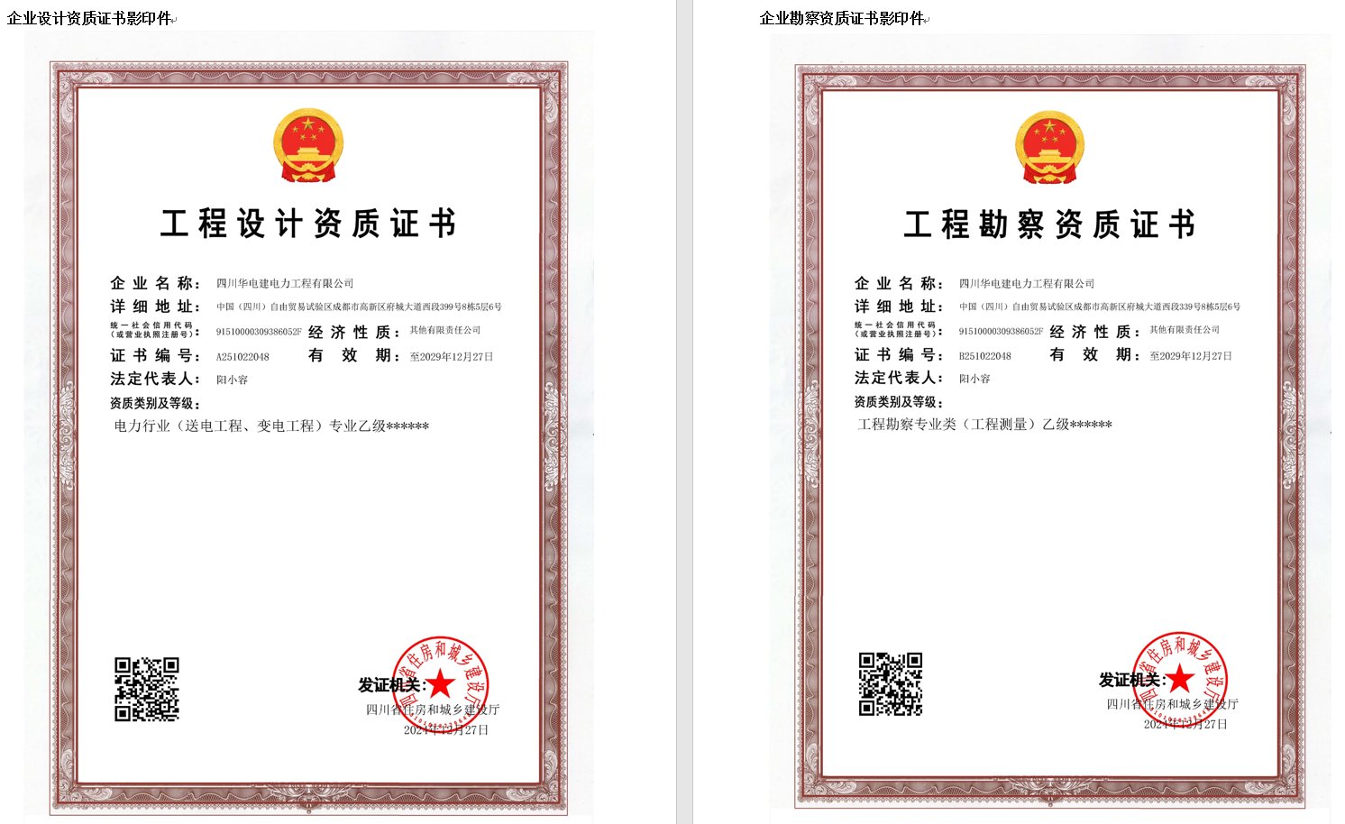 鲁泰旗下子公司—四川华电建电力工程有限公司地处成都市高新区,是一家集电力工程总承包、工程咨询与设计、工程管理的综合性实业公司。公司已获得电力工程施工总承包叁级、安全许可证;承装(修、试)四级;电力行业(送电工程,变电工程)专业乙级电工程;勘察专业类(工程测量)乙级等多项资质,同时本企业通过了北京中经科环质量认证有限公司基于GB/T19001-2016/ISO9001:2015、GB/T50430-2017标准的质量管理体系认证、GB/T24001-2016/ISO14001:2015标准的环境管理体系认证、GB/T45001-2020/ISO45001:2018标准的职业健康安全管理体系认证。主要业务范围有 220kV 及以下的输变电工程勘测、设计、技术咨询及总包业务,具有雄厚的工程设计、工程勘察及工程总承包实力。