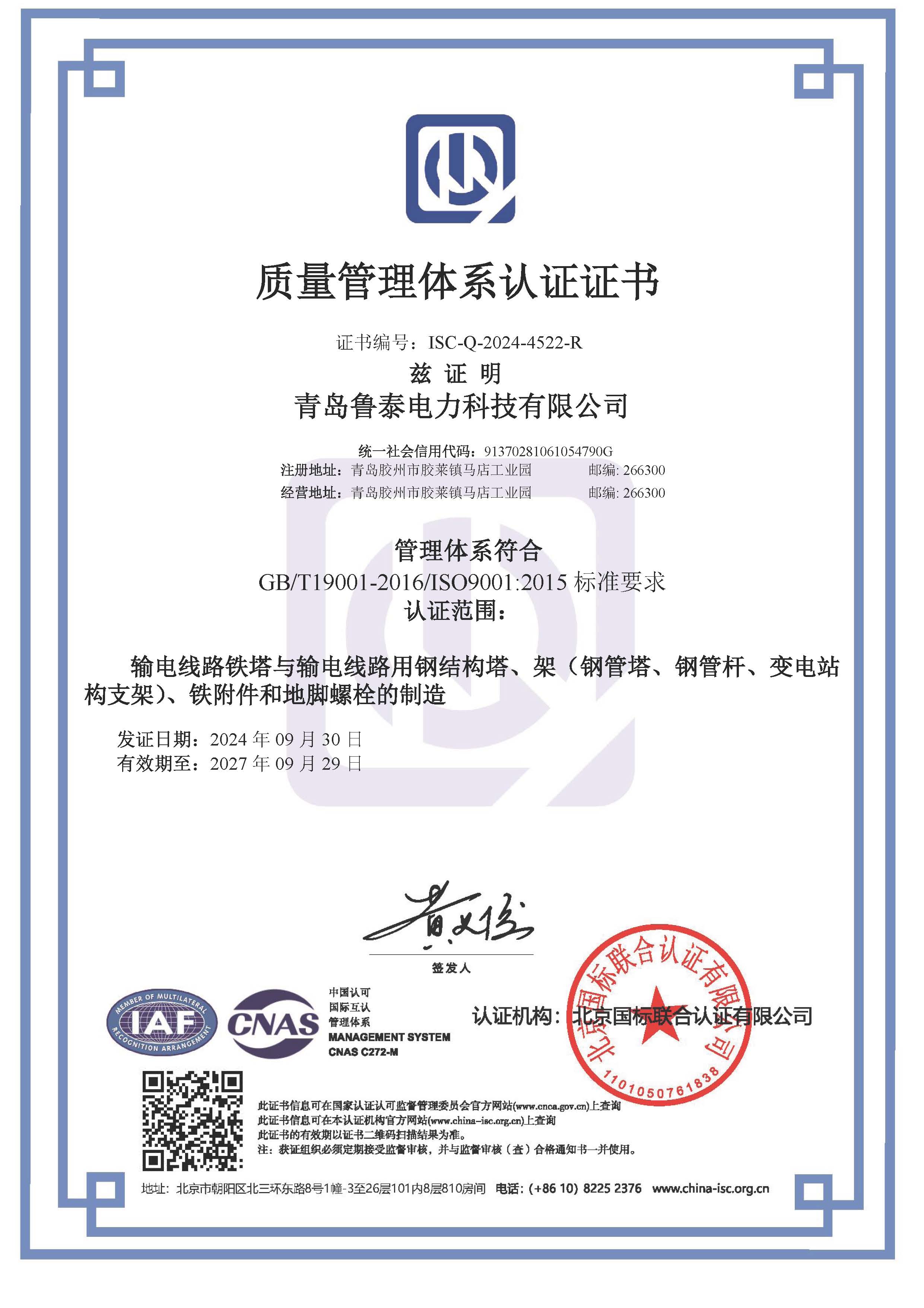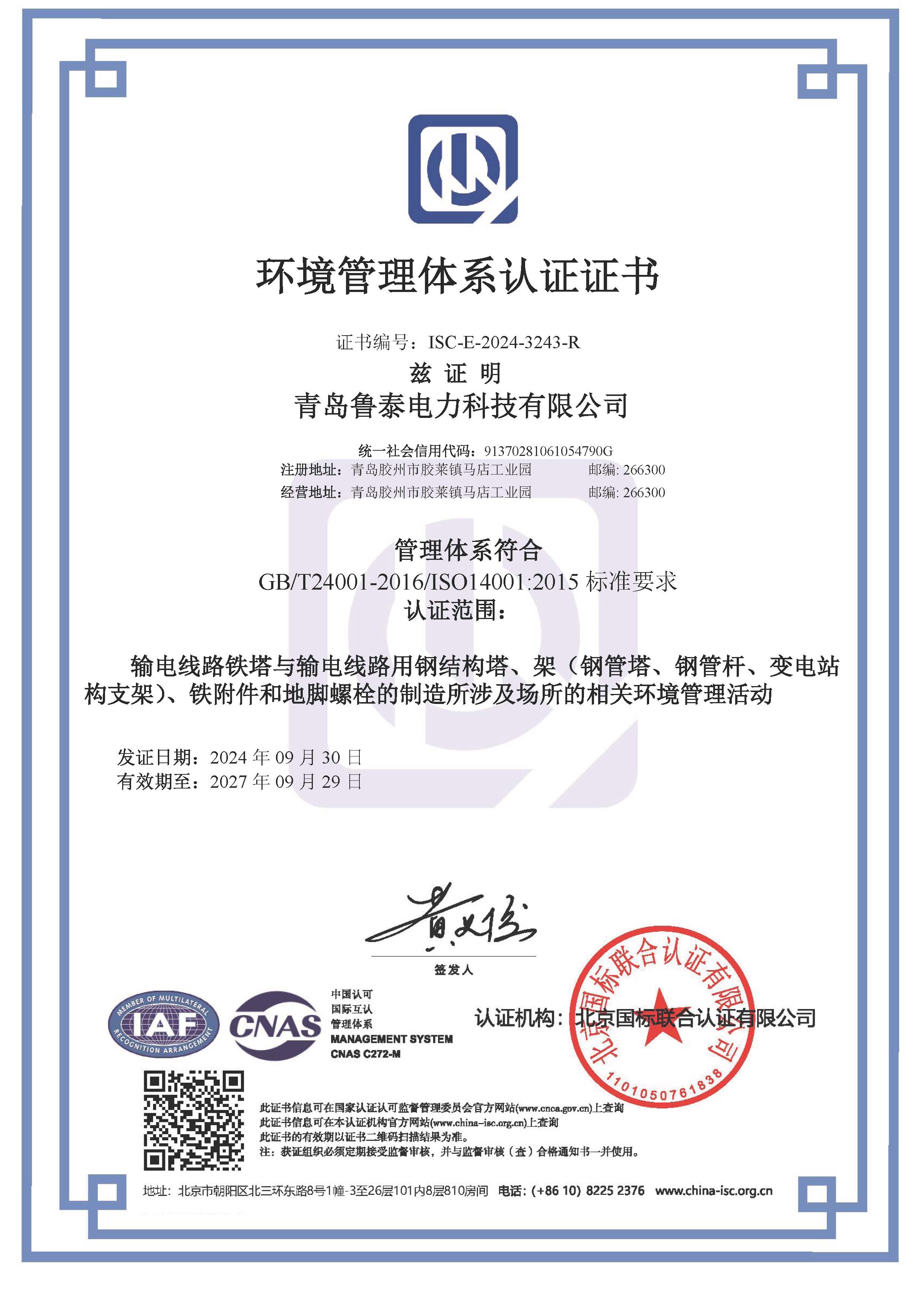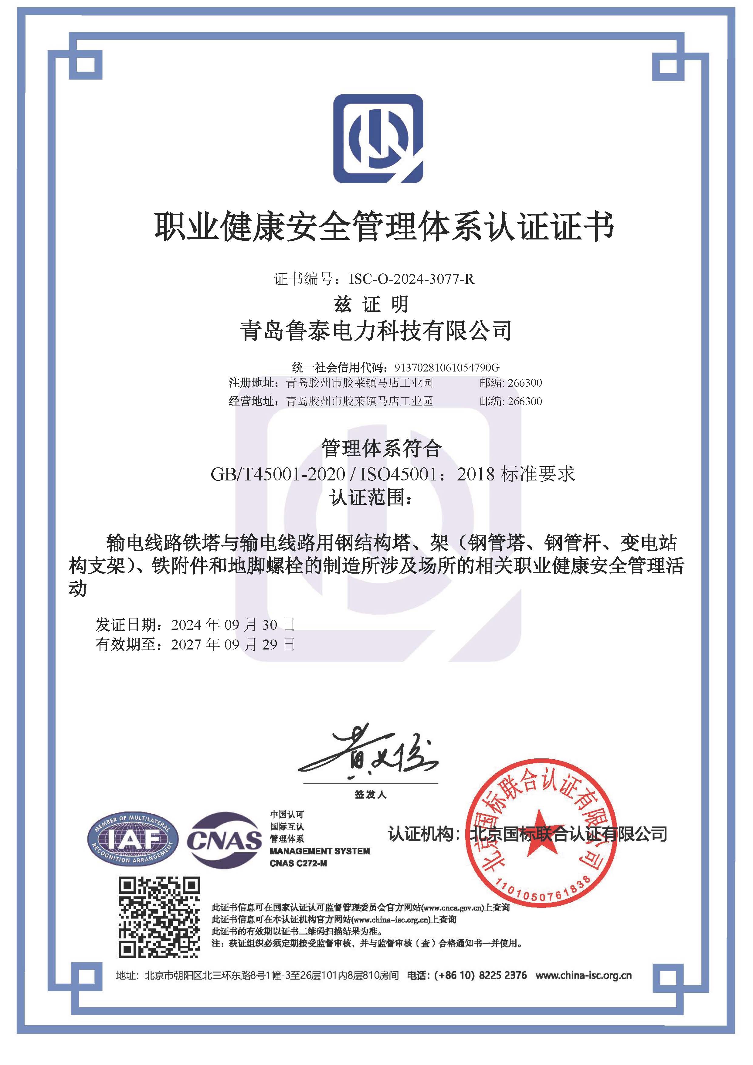 通过了质量管理体系、职业健康安全体系、环境管理体系三体系认证